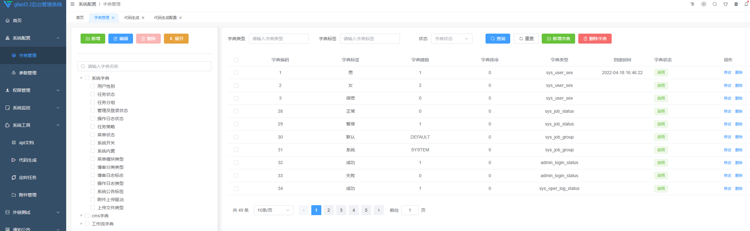6、修改字典管理页面布局,字典归类,方便管理维护