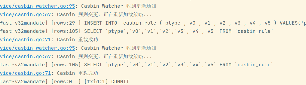 casbin默认使用内存缓存规则,当集群部署时,某一节点规则变更后默认不会通知其它节点更新规则,本次修复已添加watcher监控规则变更。集群部署时配置文件添加 cluster: true,单机部署改为false即可。